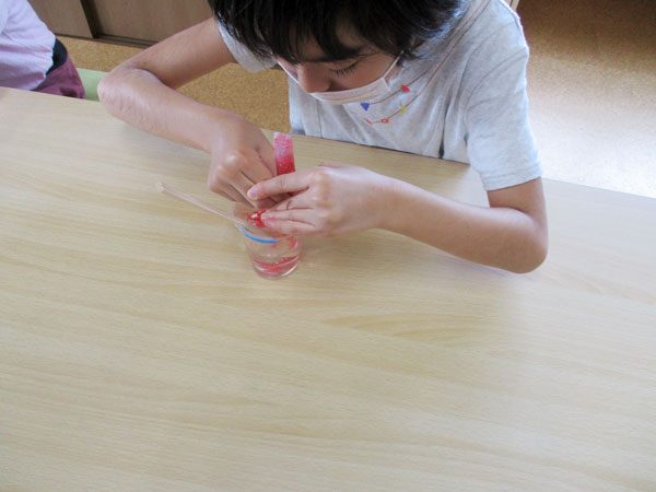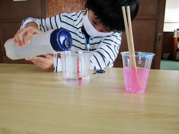 (2)洗濯のり液に絵具や食紅などで色をつける。