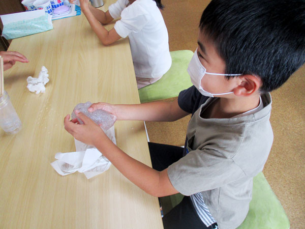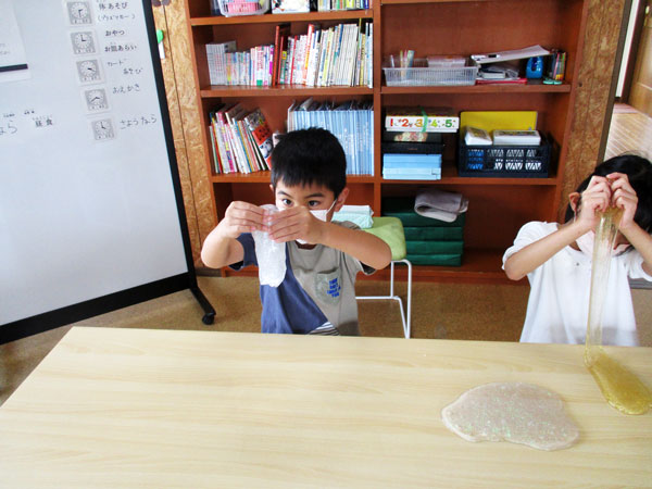 自分んで作った「スライム」で、たくさん楽しみました。
