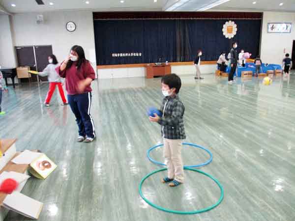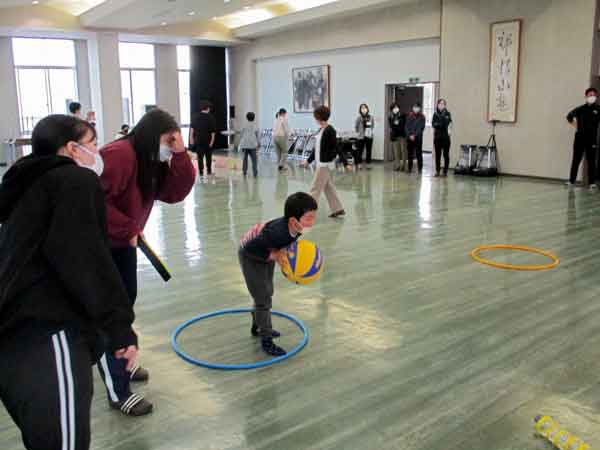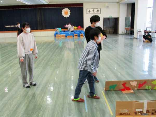 通所されている児童を大学に招いていただき、日々の学習の成果を生かしながら学生さんが考えた遊びを一緒にする機会でした。
