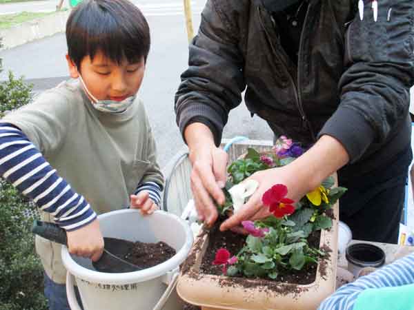 11月17日(水)~24日(水)の間に利用されたお友達と一緒に来春に向けてプランターにお花(パンジーとビオラ)を植えました。