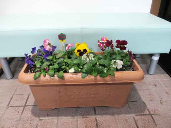 プランターの中のアイロンビーズの飾りは日々の活動制作したものです。