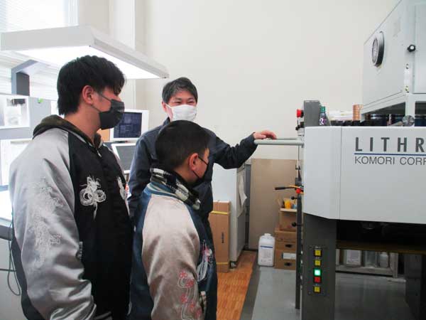 1月5日山形コロニーの本部である山形市桜田の福祉工場を皆で見学に行きました。印刷物が出来上がるまでの流れを機械が動く様子をみながら話を聞いてきました。
