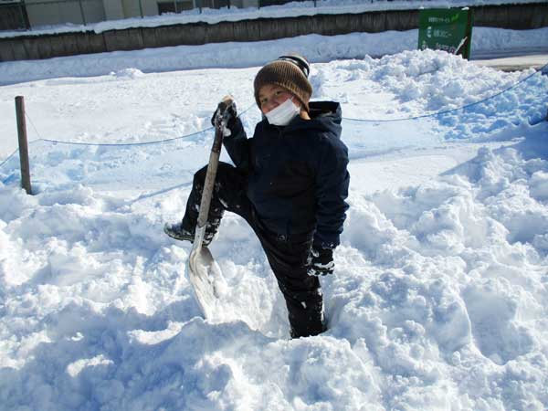 雪の中に座ったり、寝転んだりしながらも手を一生懸命動かして、なんとか形を作ることが出来ました。
