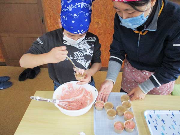 12月24日には、午前中にカップケーキを作って調理係の活動を行いました。