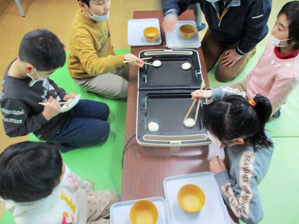 1月15日土曜日、鏡餅を焼いて、お汁粉にして食べました。 自分の分のお餅をホットプレートでじっくり焼きました。
