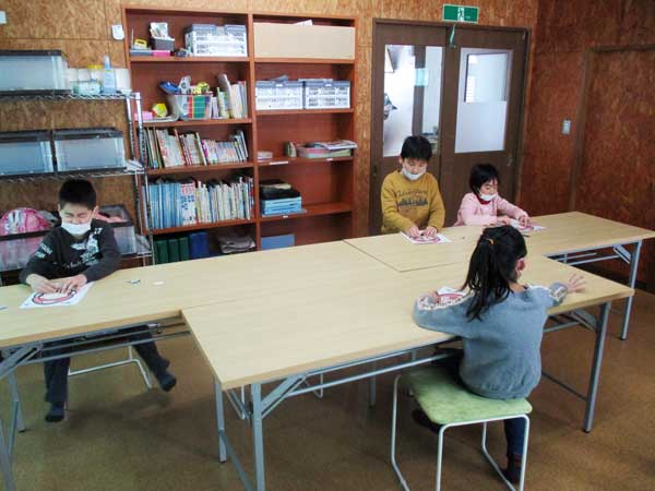 お汁粉を美味しく食べた後、福笑いを作りました。