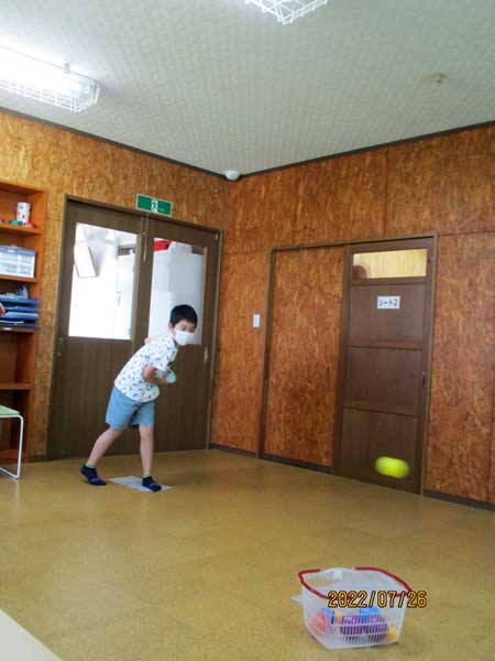 夏休みには、水遊びの他に体力発散の活動として、ホームランダービーとエクササイズも行いました。
