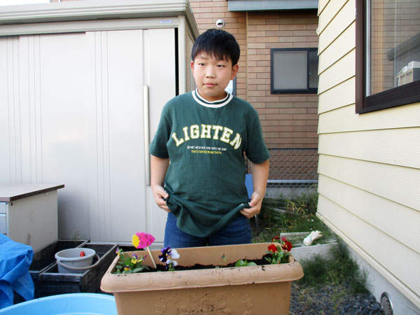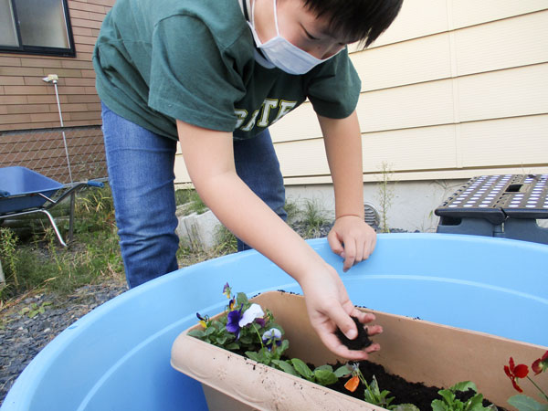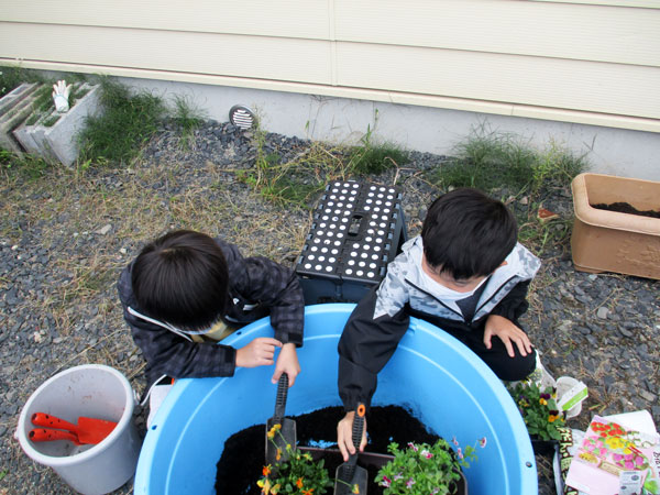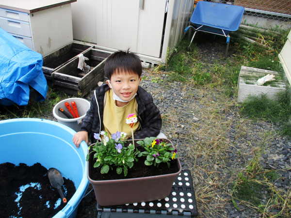 少しずつ秋風が冷たく感じる日でありましたが、男の子4人と一緒に綺麗に植えることが出来ました。