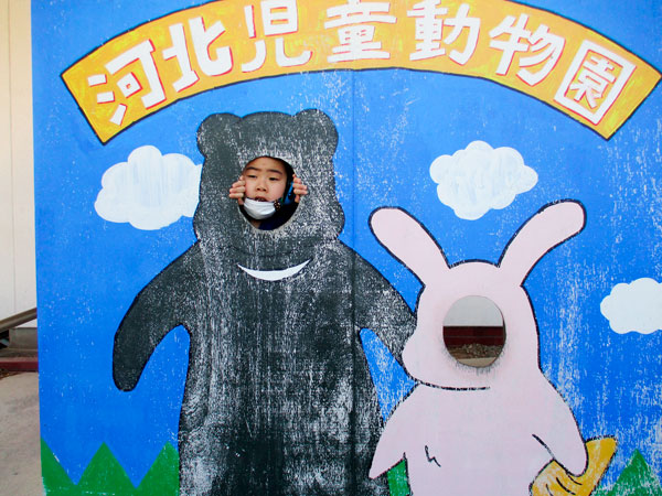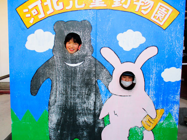 最後に顔はめパネルで記念撮影をしました。クマとうさぎになってにこにこでした。