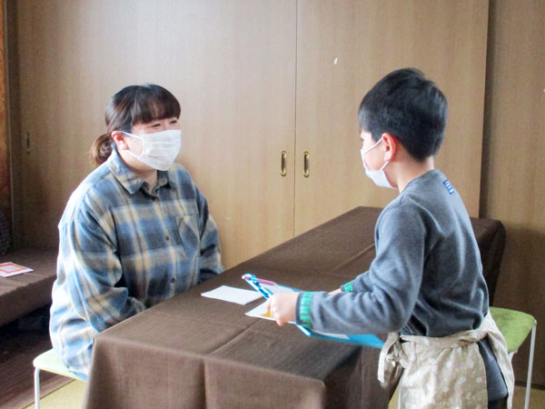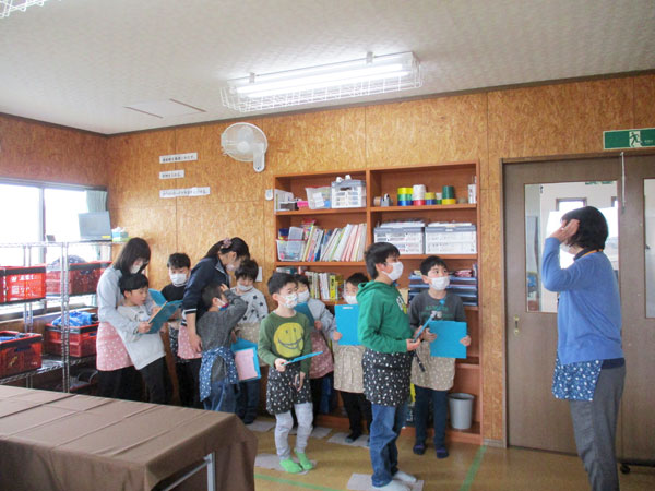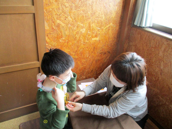 感想発表では、子どもから「緊張したけど楽しかった」、保護者からも「毎年参加しているが成長が見られた」「去年はエプロンをつけることができなかったが、今年はエプロンをつけて出来て良かった」と話ししていただきました。頑張ったご褒美にメダルをつけてもらって記念撮影しました。