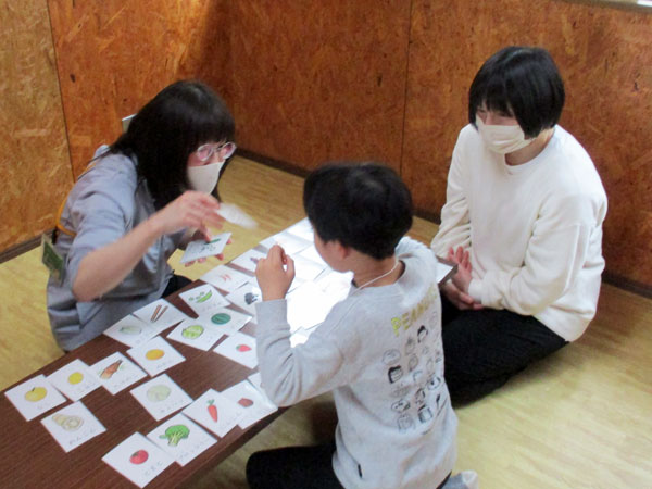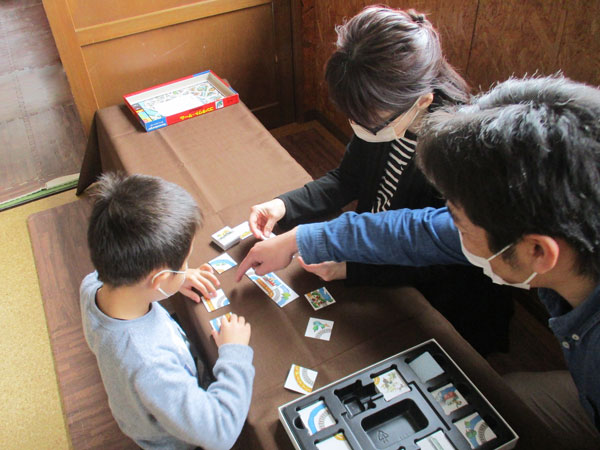 カフェが終ってからは、普段遊んでいる支援グッズを使って親子で遊びました。親御さんにも普段どんな遊びをしているのか知ってもらい一緒に楽しんで帰りました。