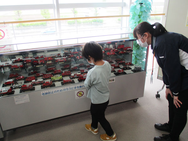 学習・展示ブースも充実していて、消防ミニカーのコーナーに子どもたち、釘付けでした。