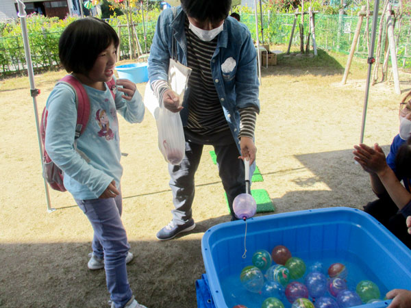 他には的当てや水ヨーヨーのブースがあり、親子で楽しむ笑い声が聞こえてきました。