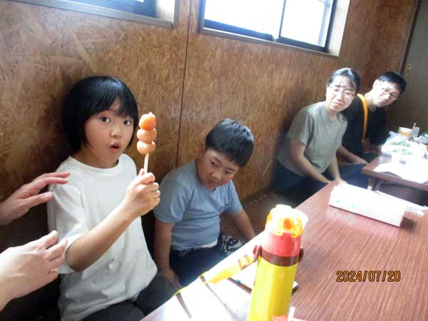 食べ物はフランクフルト・枝豆・ポップコーン・玉こんにゃくがあります。子供たちも家族の方々も美味しそうに食べてくれました。
