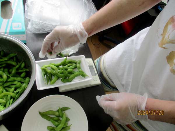 中学生にはお祭りスタッフとして、枝豆を同じ量になるように量ったり、出し物の手伝いなどをしてもらいました。