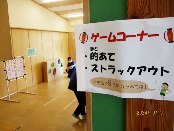 今回は、玉こんにゃく・フランクフルト・綿あめ・ポップコーンの出店と、ストラックアウト・的当て、当てくじのゲームコーナーがありました。ステージの出し物で、羽陽学園短期大学の方々が手遊びを披露してくださいました。