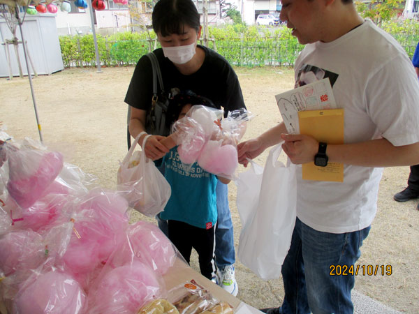 中学生は、接客や綿あめ作りなど出店のお手伝いとして参加してくれました。夏に行ったパンの販売体験の経験を活かして頑張ってくれました!