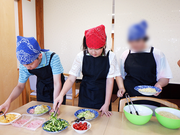 お昼をみんなで作る調理実習。今年の夏も色んなものを作りました。