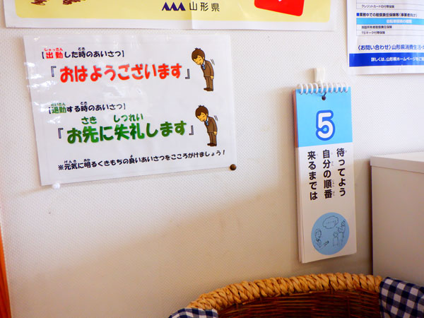 まず、シードでは「働く」ことを意識することから通所時は「おはようございます」、帰るときは「お先に失礼します」とあいさつしています。「学生時代に身につけたいこと」の日めくりカレンダーも毎日使っています。