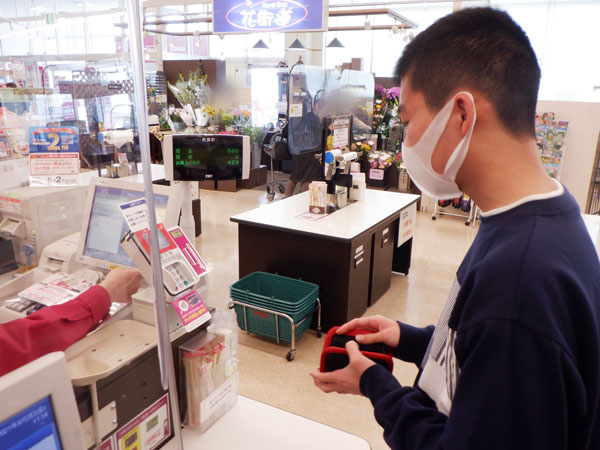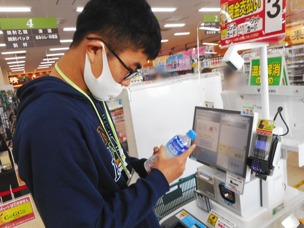 自立生活力を高める活動で、買い物訓練としてスーパーでお昼に食べるものを買います。予算内で買えるように計算し、支払いはセルフレジにチャレンジしています。