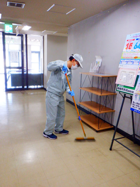 山形コロニー就労サポートセンターでの就労移行体験では、JST(職場における対人技能訓練)でお話を聞き、意見を発表する機会や、上山市役所清掃など外部の活動に参加させていただきました。上山市役所清掃では、上山市役所内の廊下や階段などの掃き掃除、拭き掃除を通し経験を重ねています。