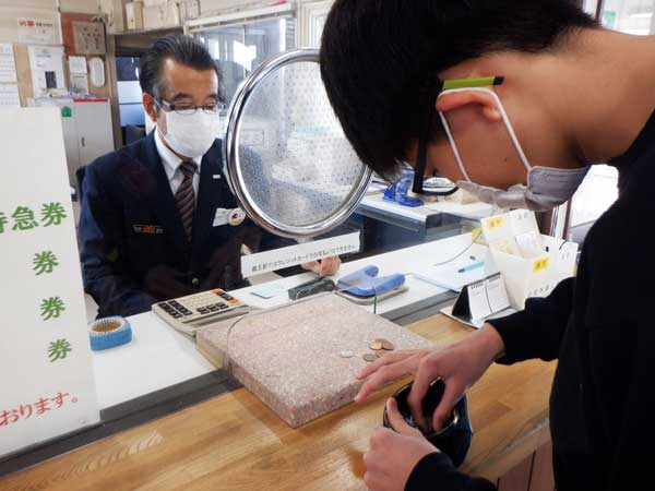 今回は、蔵王駅~山形駅間を往復しました。蔵王駅から10:23発の電車に乗るため、窓口で一人一人切符を購入しました。駅員さんがとても丁寧で親切な方でした☆