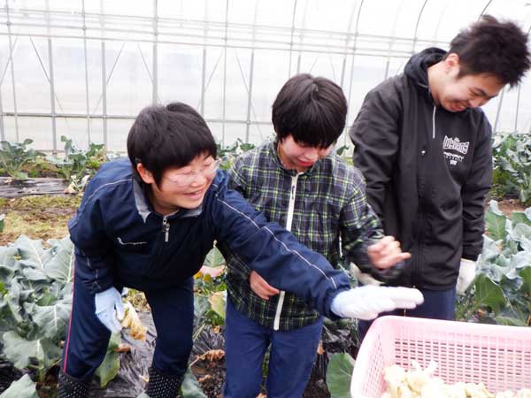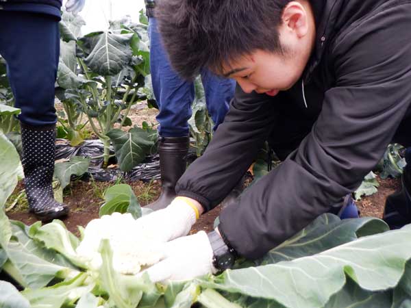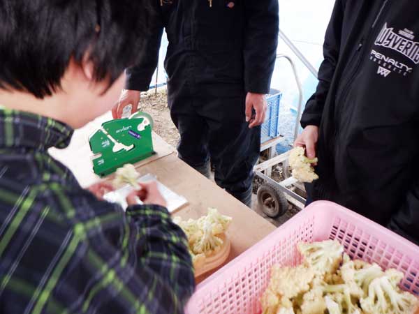カリフラワーの収穫と袋詰めをさせていただきました。
