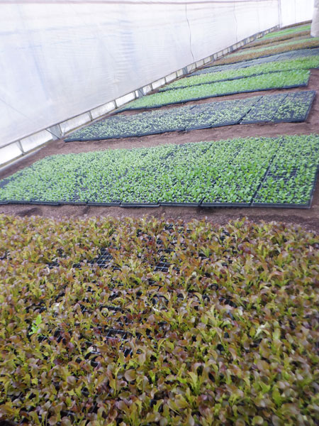 現在山形グリーングループでは障がいのあるスタッフが24名働いておられ、オフィス・館内の清掃・環境整備のお仕事と、ビニールハウスでのベビーリーフをはじめとする野菜づくりのお仕事をされています。