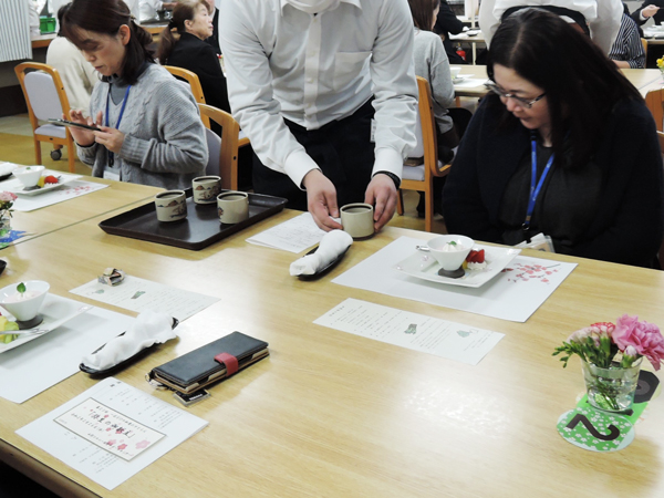 今回は福祉事業所のお客様の他、ホテル・旅館・飲食関係の企業様に多くお越しいただきました。接客訓練(会食)のあとの事業所説明会では、清和会の武田会長より障害者雇用の実際についてのお話もしていただき、企業の皆様に障害者雇用について知っていただく良い機会となりました。