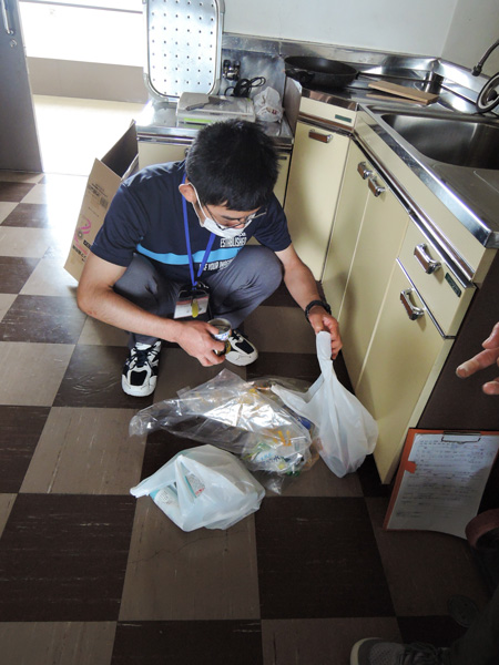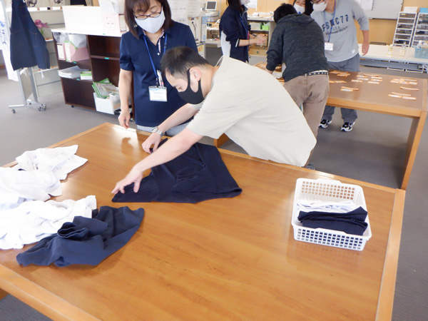 日常生活の中の『整頓』に着目し、ごみの分別・洗濯物たたみ・アイロンかけ・段ボール結び・部屋の片づけを体験しました。
