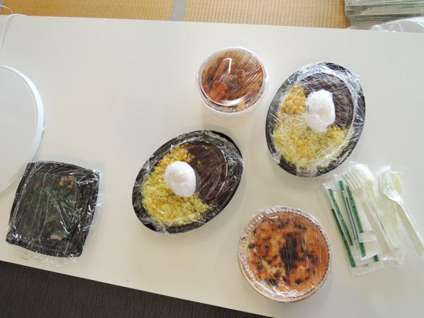 昼食は前もって決め、代表者が電話で注文しテイクアウトすることにしました。
