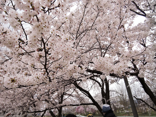 朝は雪が降り肌寒く、天候が安定せず午後からの天気がとても心配でした。しかし、時間になると晴天とまではいかずとも黒い雲が流れ、肌寒い中でしたが花見を決行することができました。