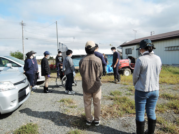 早朝は雨が降っていて、心配したのですが、開始時間前にはすっかり晴れお天気にも恵まれ、秋晴れの下での農業体験となりました。