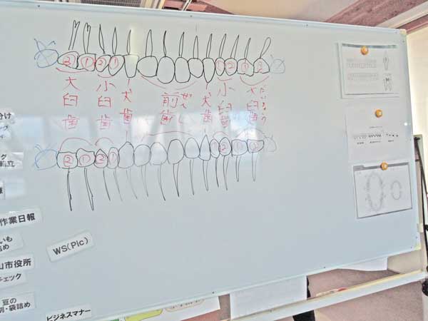 3班に分けグループワークを行うと、歯の役割や仕組みについての理解ができている方、そうでない方、様々な方がおりました。又、虫歯や歯周病についてもしっかりと学ぶことができました。