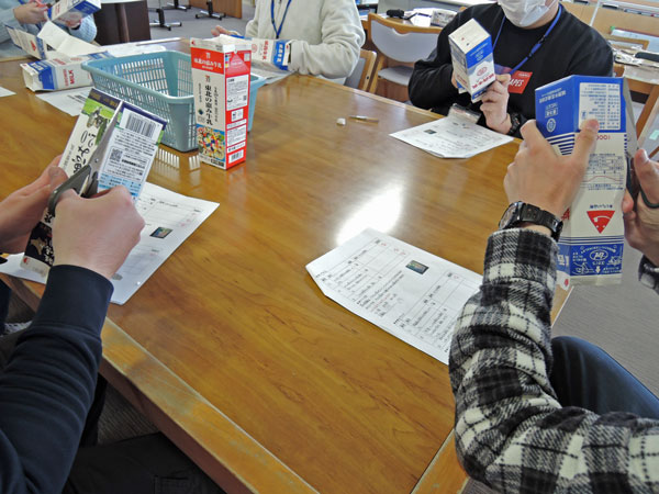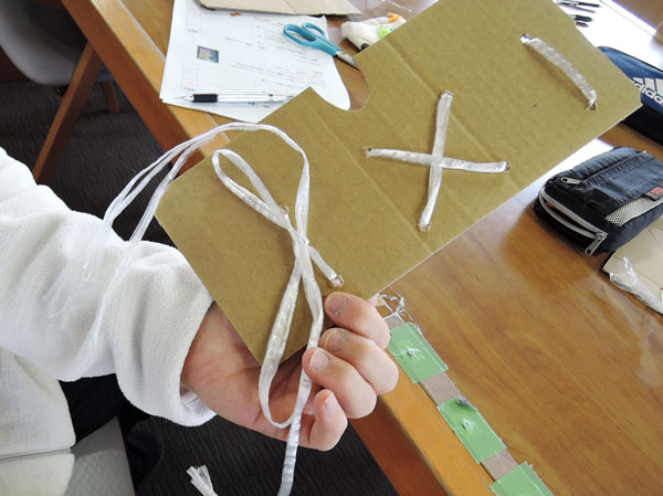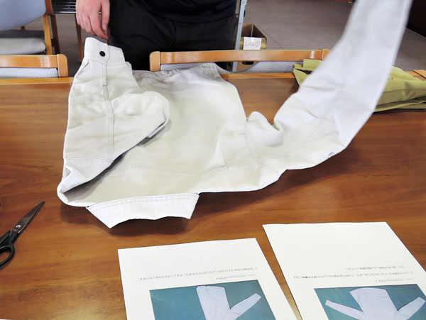 続いて、衣類畳み、ゴミの分別・リサイクル、紐通し・紐縛りの3項目について難易度を変え、ピッキング形式で体験しました。実際、体験してみると「紐通し・紐縛りの項目が難しかった」とのことでした。