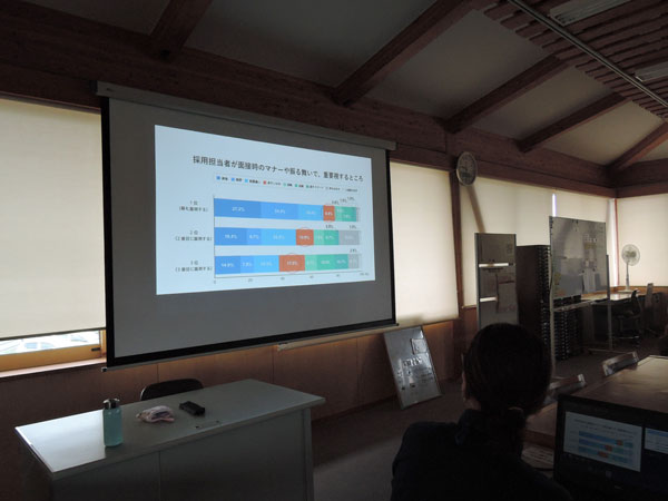 まずは「面接時や就労するうえで、基本となる身だしなみ」についてスライドを見ながらの講習です。