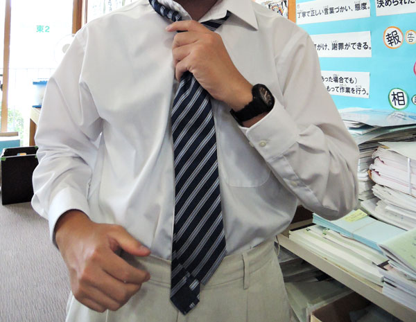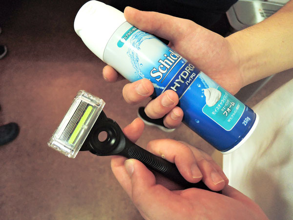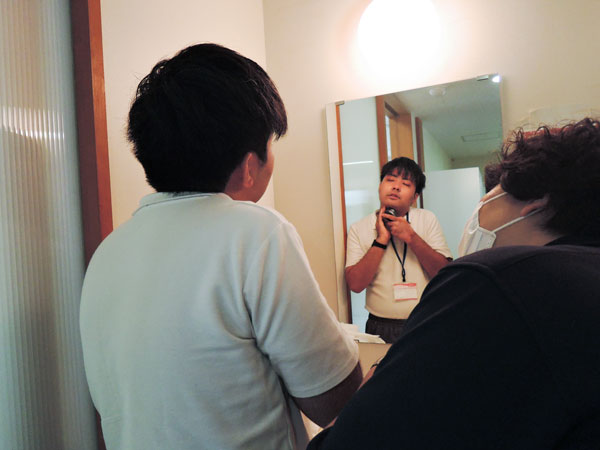 最後は、〈髭の剃り方〉、〈ネクタイの結び方〉、〈ヘアスタイルの整え方〉に分かれての演習です。