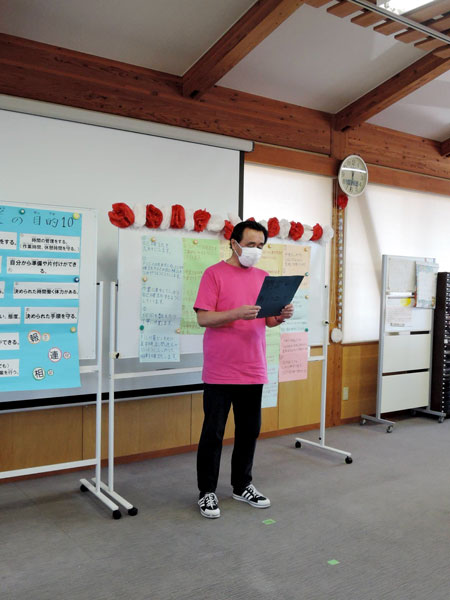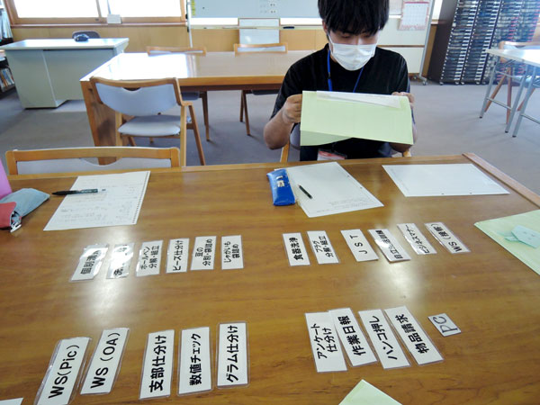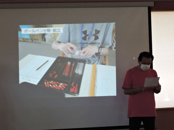 就労サポートセンターでは、第1部「作業説明会」・第2部「作業体験会」を行いました。1ヶ月程前から、各グループに分かれ一生懸命練習を重ねてきました。