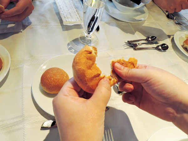 パンは一口大にちぎって。肉料理が終わったらパンも下膳されるので注意です。