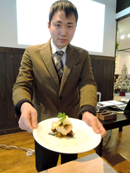 大皿から取り分けます!練習の成果は出せるでしょうか。