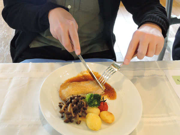 みなさん、ナイフとフォークの使い方が様になってきました。