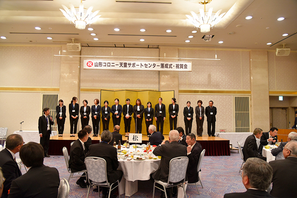 ーか月後の平成31年4月27日(土)には天童ホテルにて落成式・祝賀会を開催しました。当日は天童市長をはじめ、芳賀・高擶地域の方や建設に携わった方々、日頃から当事業所を応援・サポートしてくださっている皆様と同センターの完成を共にお祝いしました。