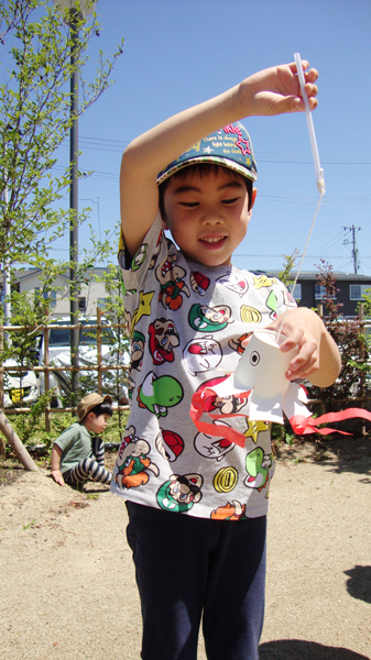 走った後は、吹き流しを使って活動しました。