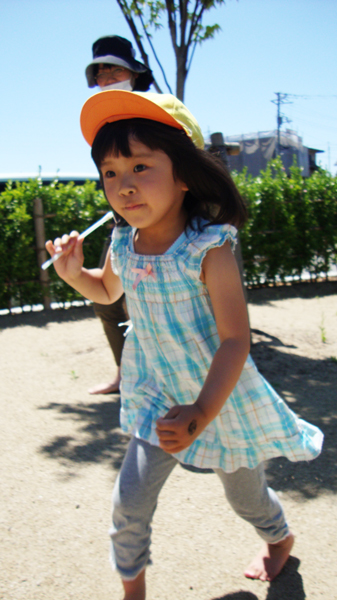 最初は慣れない裸足活動でなかなか地面につくことが難しい様子でしたが、次第に裸足でも気にならなくなり、最後にはよーいドンをして走りました。