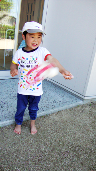 大きく腕を回したり、手首を使ってくるくる回したりして遊び、楽しく活動することができました。