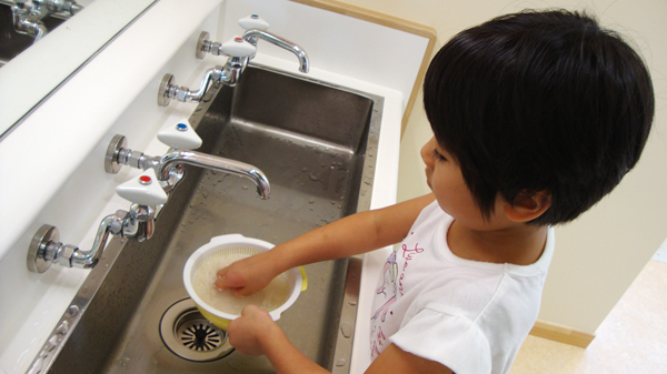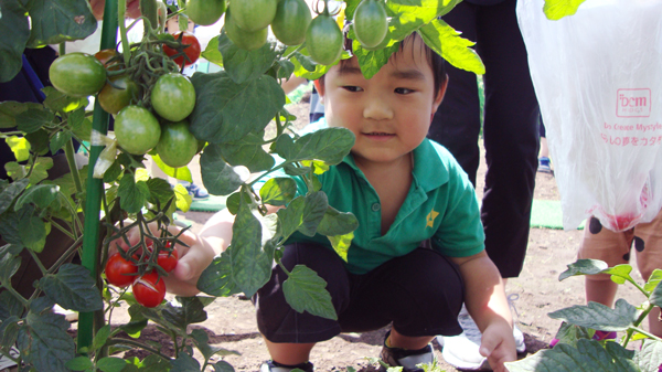 今回の企画は母子活動ではなく、子どもたちだけで一日活動する、“夏のまなび塾”でした。午前中には畑でトマトやきゅうりの収穫をしたり、炊飯の体験を行いました。