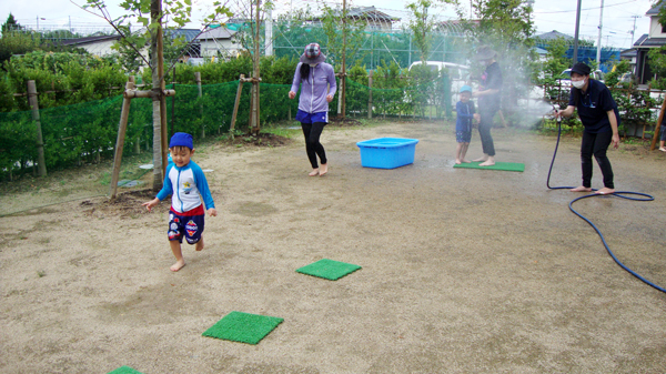 さらに、つめたいお水のシャワーを浴びて、「気持ちいい~!」とみんな大喜び♪