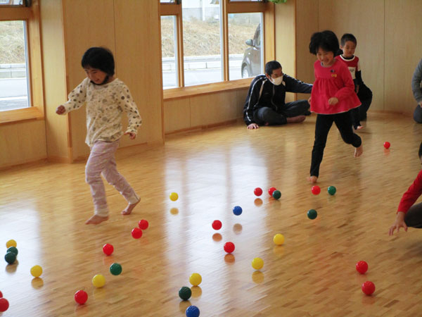 玉入れはたくさんのボールに大喜び!夢中になってボールを集め、しっかり狙ったところに入れていましたよ!