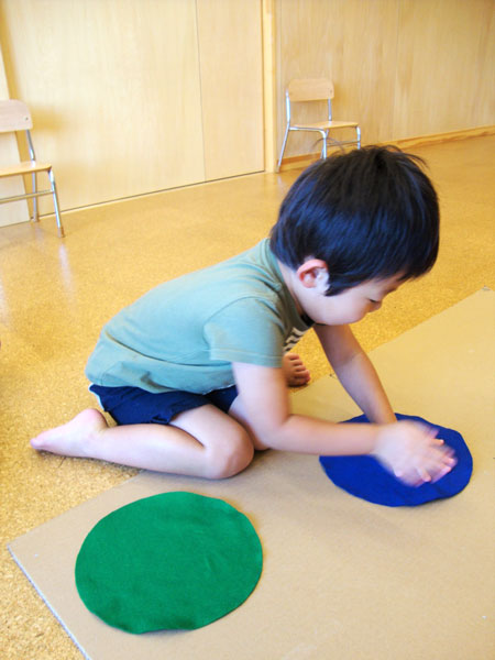 「的当て」チームは、的のフェルトを自分で選んで、好きなところに貼りました