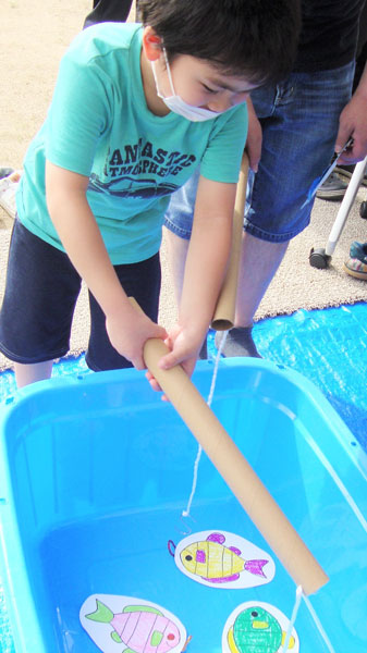 皆で頑張って準備した「的当て」や「魚釣り」を、家族で一緒にわいわい楽しみました。